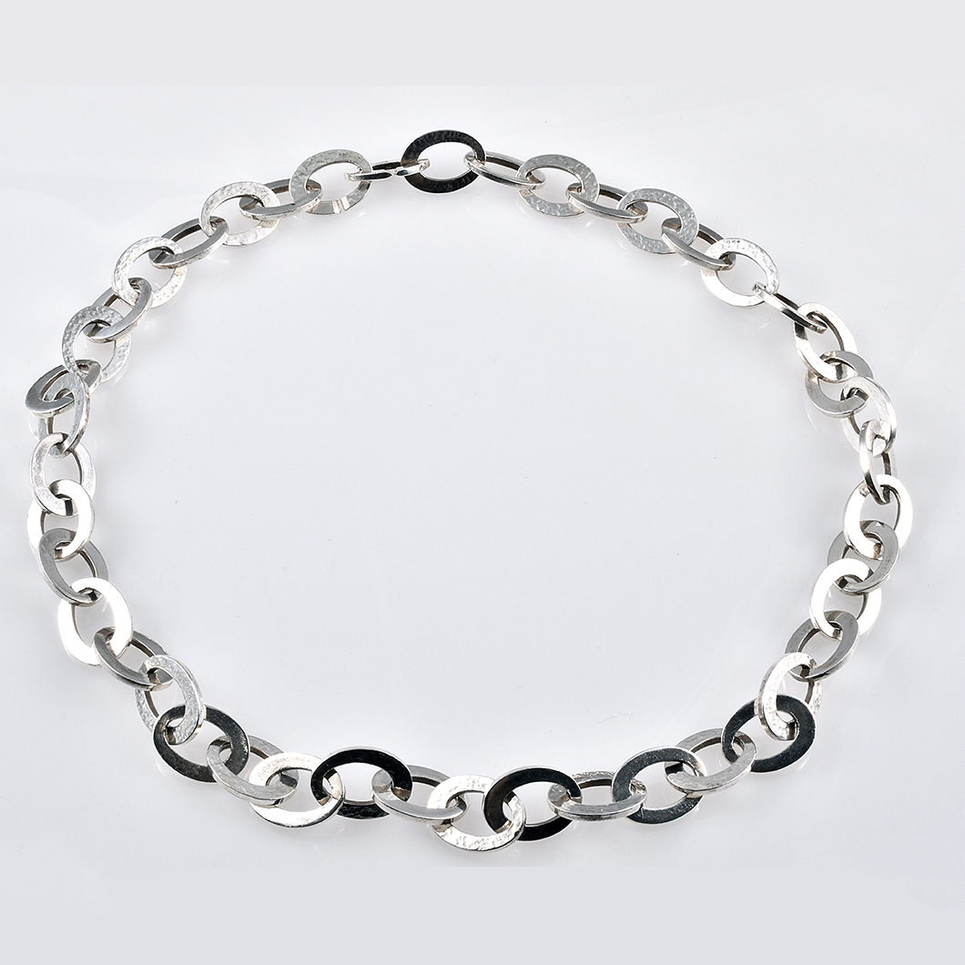 Αλυσίδα ασημένια σφυρήλατη σε σχήμα οβάλ.