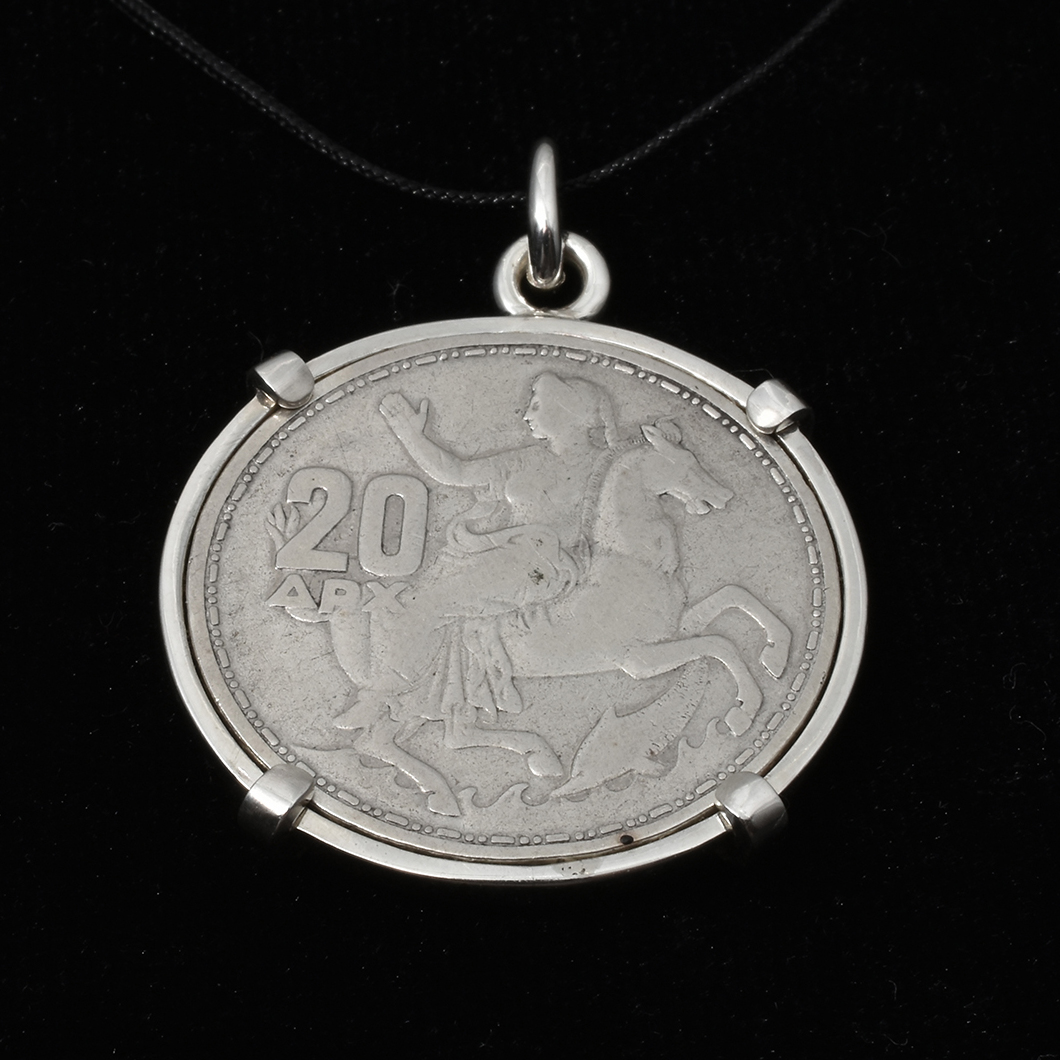 Μενταγιόν ασημένιο – εικοσάδραχμο.
