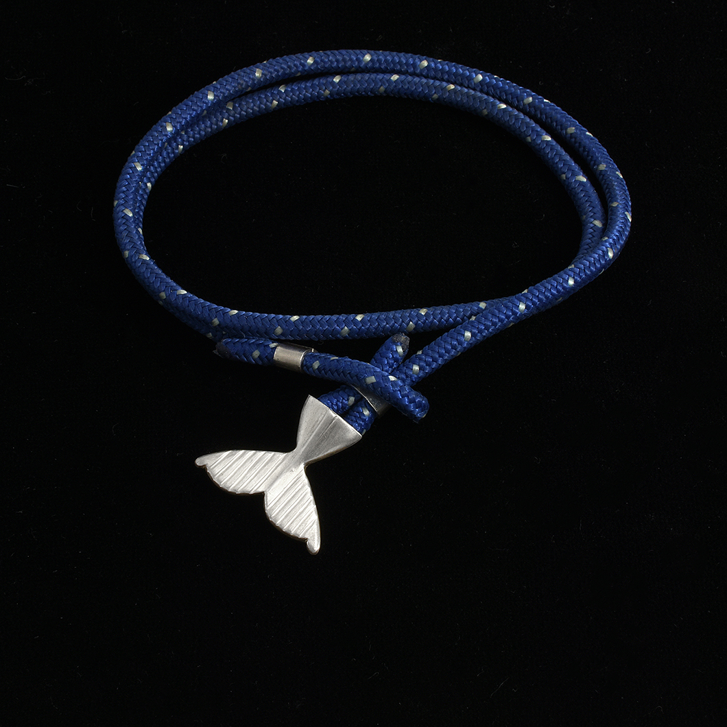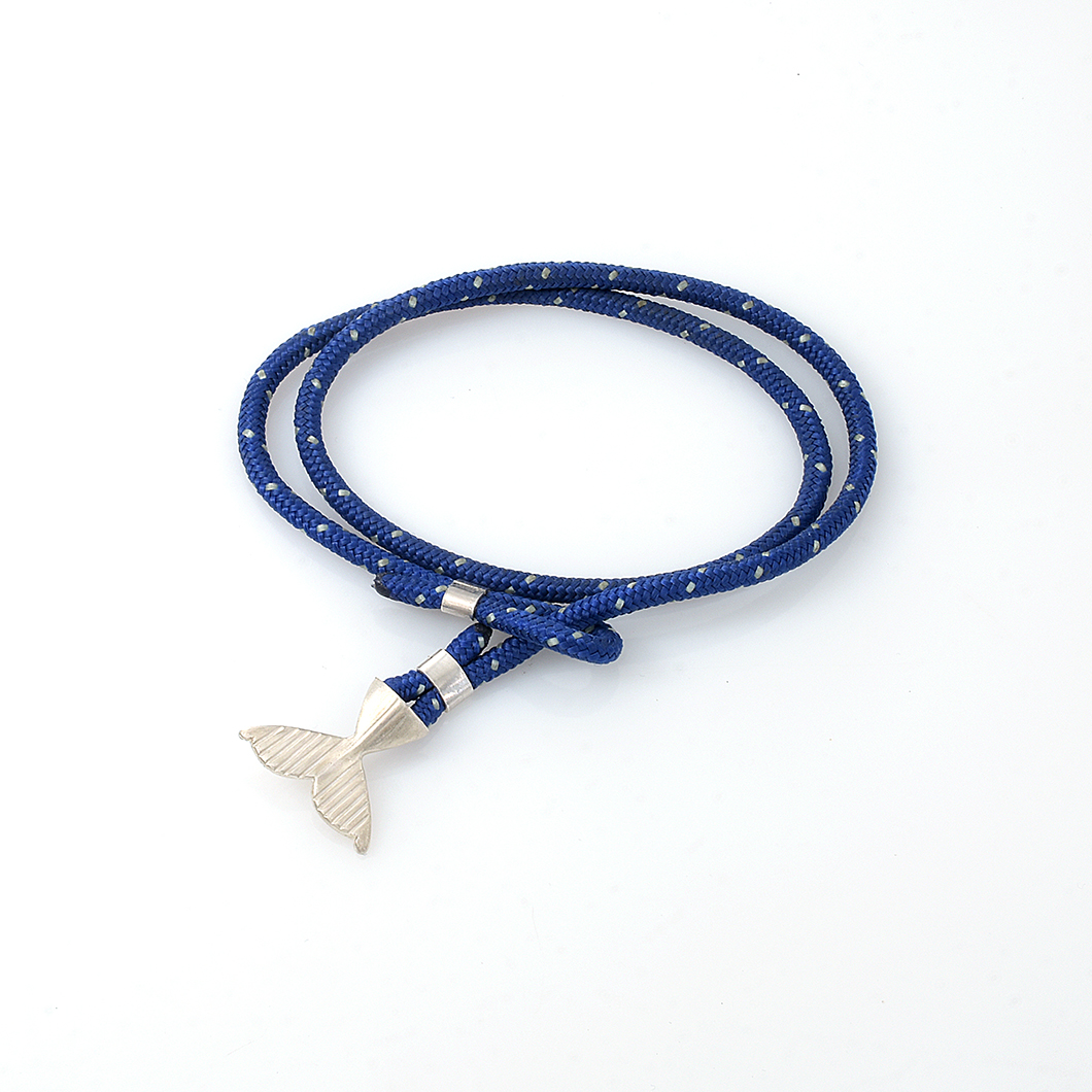Βραχιόλι με ναυτικό διπλό νήμα και ασημένιους σφικτήρες